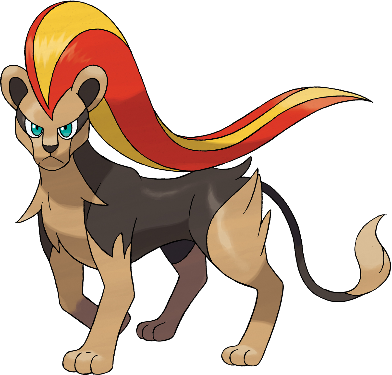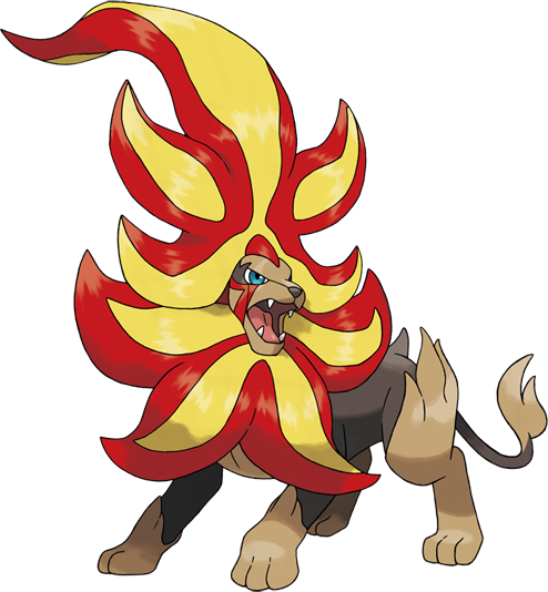 « Ce Pokémon crache des flammes à plus de 10 000 °C. Il protège ses congénères en secouant sa grande crinière ardente. »