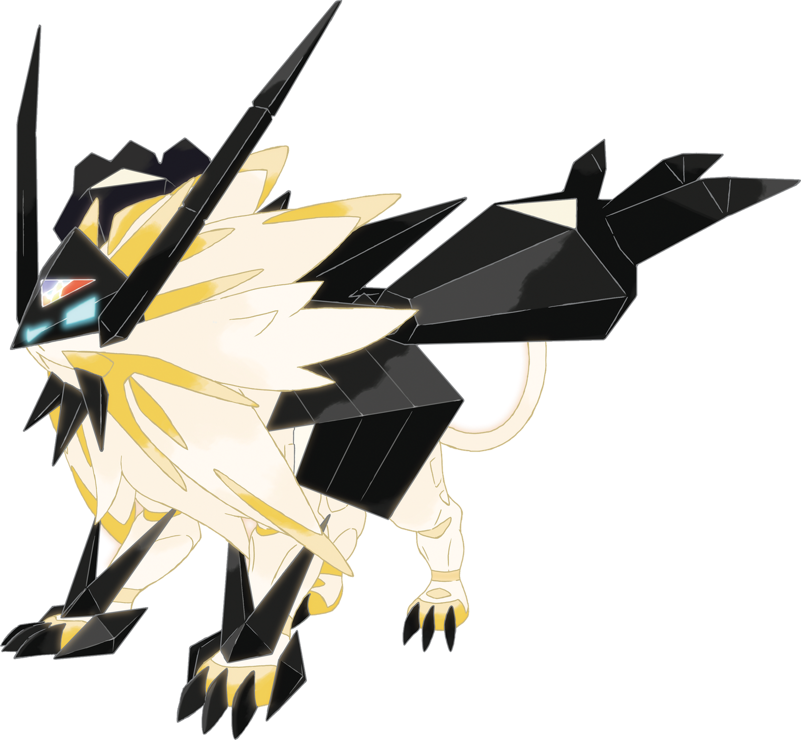 « La forme que Necrozma prend lorsqu’il absorbe la lumière de Lunala. Il attrape et déchiquette ses adversaires à l’aide de ses longues griffes. »