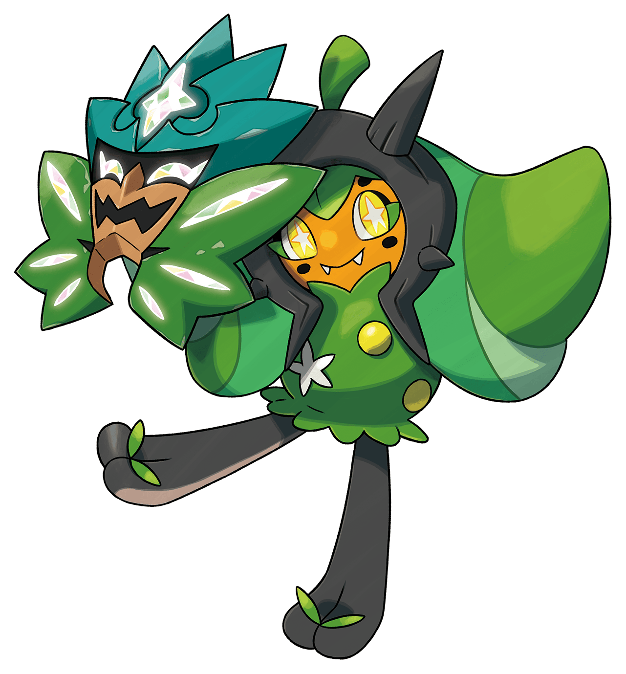 « Ce Pokémon est curieuse et facétieuse Lorsqu’elle se bat, elle puise dans l’énergie de son masque. Cette énergie est du même type que ce dernier. »