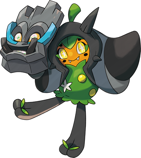 « Ce Pokémon est curieux et facétieux. Lorsqu’il se bat, il puise dans l’énergie de son masque. Cette énergie est du même type que ce dernier. »