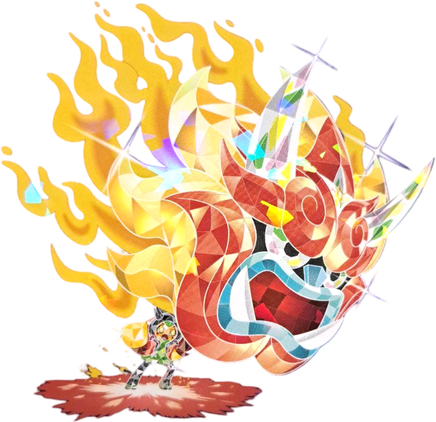 « Sous cette forme spécialisée en attaque, il assaille ses adversaires avec autant d’ardeur que les flammes brûlantes d’un fourneau. »